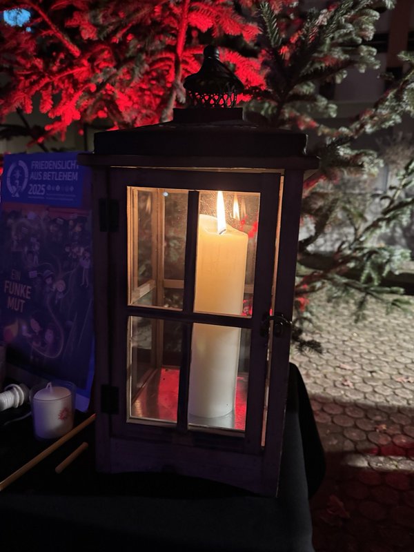 Ein besonderer Programmpunkt war der 14. Dezember: Im Rahmen der Adventsbläser wurde das Friedenslicht aus Bethlehem verteilt. Die Pfadfinder*innen brachten das Licht mit und erklärten in einem kurzen Impuls die Bedeutung des Friedenslichts, welches jährlich von der Geburtskirche in Bethlehem ausgehend verteilt wird – auch bis zu uns in die Pfingstweide.