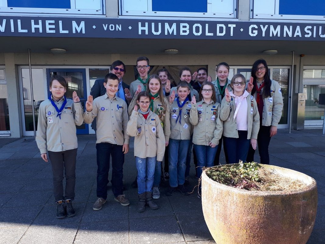 Unser Schulleiter Herr Klaes war früher selbst bei den Pfadfindern. Da er auch zur DPSG (Deutsche Pfadfinderschaft Sankt Georg) gehörte, dachten sich diejenigen Pfadfinder des Stammes St. Albert, die Schülerinnen und Schüler am WHG sind, Herrn Klaes zu bitten, mitzumachen.