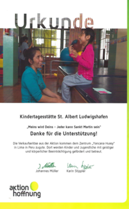 Wie schon 2017 haben wir auch 2018 Jahr die Spendenaktion „Meins wird Deins“ vom Kindermissionswerk in unserer Kita gestartet. Diesmal gingen die Spenden nach Peru. Dort werden Kinder mit körperlichen und geistigen Beeinträchtigungen unterstützt und gefördert. Ebenso sollen die Jugendlichen vor Ort die Möglichkeit bekommen, eine Ausbildung zu machen.