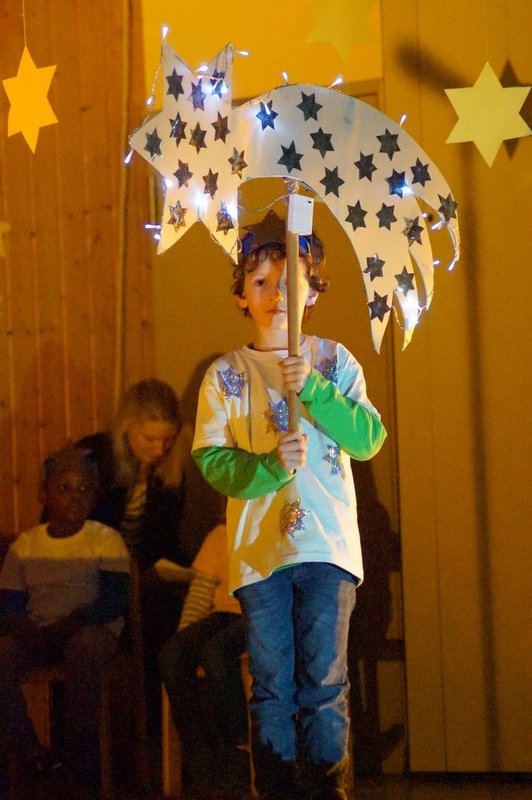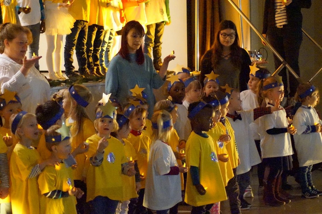 Zum Abschluss des Jahres fand am 15.12. unsere traditionelle Weihnachtsfeier im großen Saal der Kirche statt. Wir durften 250 Eltern, Verwandte und Interessierte begrüßen und haben uns sehr über das große Interesse und die Wertschätzung, die unseren Kindern und uns entgegengebracht wurde, gefreut. Alle Kinder führten gemeinsam das Theaterstück „Nur ein kleiner Stern“ auf und bekamen begeisterten Applaus für ihre tolle Leistung.