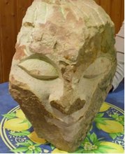 Als Erinnerung an sein erfolgreiches Wirken und für die vielen geknüpften Beziehungen gab ihm der Kirchenchor dreierlei als Geschenk und zur Erinnerung mit: eine Collage zahlreicher Erinnerungsfotos und Schnappschüsse, die Figur eines Dirigenten gefertigt aus Treibholz und eine Skulptur aus gelb rotem Pfälzer Sandstein: einen energischen „Kopf“ des Künstlers Wolf Münninghoff mit Ecken und Kanten, der den Musiker mit viel Herzblut erahnen lässt. Er soll einen Platz in Dominiks Garten (im hessischen Domizil?!) finden und ihn immer an die gemeinsamen Tage in Oppau erinnern! Danke und alles Gute Dominik!