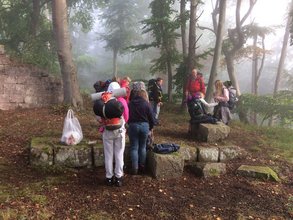 Am Samstag, den 02.09.2017, brachen wir Jungpfadfinder vom Stamm St. Albert zu einer zweitägigen Wanderung nach Bad Dürkheim (Frankenthaler Hütte) auf. Wir hatten alles selbst geplant und organisiert, nur unterstützt von unseren Leitern, und so liefen wir zur Bushaltestelle und organisierten uns Bustickets nach Bad Dürkheim. Da der Bus Verspätung hatte, haben wir natürlich auch unsere Bahn verpasst. Also mussten wir im Fahrplan nachschauen, wann die nächste Bahn nach Bad Dürkheim fuhr. In Bad Dürkheim angekommen mussten wir erst einmal die Karte studieren. Dann ging es querfeldein in den wunderschönen Pfälzerwald. Leider fing es für eine kurze Zeit an zu regnen, weshalb wir eine kleine Pause einlegten um unsere Regenkleidung überzuwerfen. Unser erstes Ziel war es, den Römischen Steinbruch zu erreichen. Nach dauerhaftem bergauf Laufen erreichten wir ihn endlich! Mittlerweile hatte es auch wieder aufgehört zu regnen und wir konnten die schöne Aussicht auch bei gutem Wetter genießen. Danach ging es weiter zur Hardenburg. Unterwegs kamen wir an einem atemberaubenden Platz mit einem umwerfenden Ausblick auf die Limburg vorbei. Nachdem wir wieder zu Kräften gekommen waren, hieß es wieder, schwere Rucksäcke aufziehen und weiter. Schließlich entschieden wir uns, eine kleine Abkürzung zu nehmen, die wir mit Hilfe des Kompasses auch meisterten. Wir kamen an einer schönen Stelle im Wald heraus. Nun ging es wieder an den Wegmarkierungen entlang. Nach einer Weile erreichten wir die Hardenburg. Dort legten wir unsere erste große Pause ein und aßen unseren mitgebrachten Proviant, denn wir waren alle sehr hungrig.