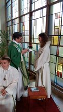 Im Kyrie und in den Fürbitten baten die Kinder um Kraft, ihre neue Aufgabe mit Freude und Zuverlässigkeit meistern zu können. Wir, die Gemeinschaft der Messdiener, sind froh, dass sie jetzt zu uns gehören!