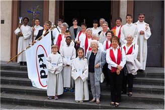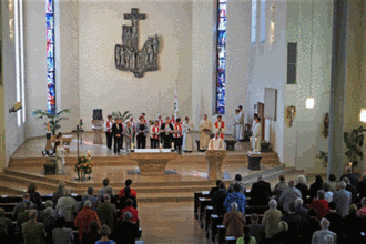 Im Anschluss an den Gottesdienst fand in der Unterkirche ein Sektempfang statt, dem viele Gottesdienstbesucher beiwohnten. Herr Pfarrer Eiswirth fand bei dieser Gelegenheit die richtigen Worte, um der Gemeinschaft einen Einblick in die Tätigkeit und die Herkunft der kfd zu geben. Diesen Worten, den Danksagungen und der Übergabe von Präsenten folgten noch interessante und bewegte Gespräche.